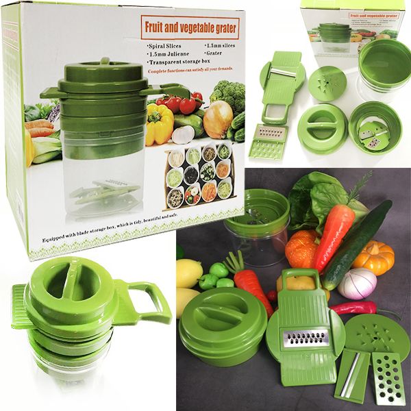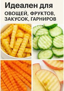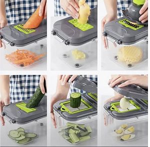 Благодаря сменным насадкам, вы сможете нарезать соломкой, ломтиками и кружками, или же натереть продукты, с помощью всего лишь одного приспособления. Многофункциональная терка с контейнером имеет удобный прозрачный контейнер к которому крепятся различные насадки Благодаря нему вам всегда будет видно, что внутри и в каком количестве. При желании можно подать салат прямо в контейнере, либо оставить на хранение в нем же и убрать в холодильник.
