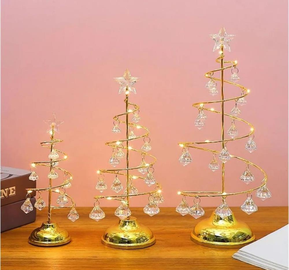 Изящная ёлочка сделана из металла, покрыта позолотой с украшениями - хрусталиками