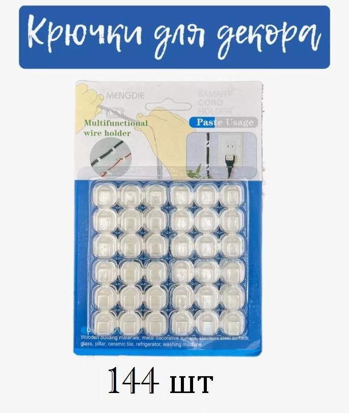 Крючки крепления 144 штуки прозрачные для гирлянды