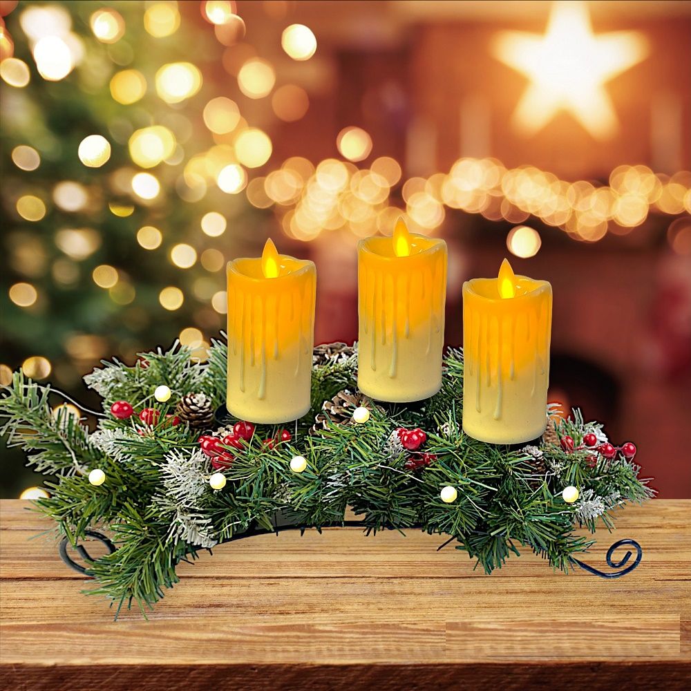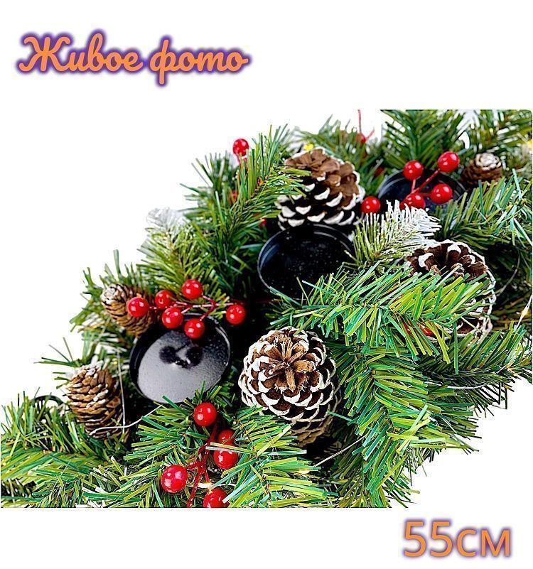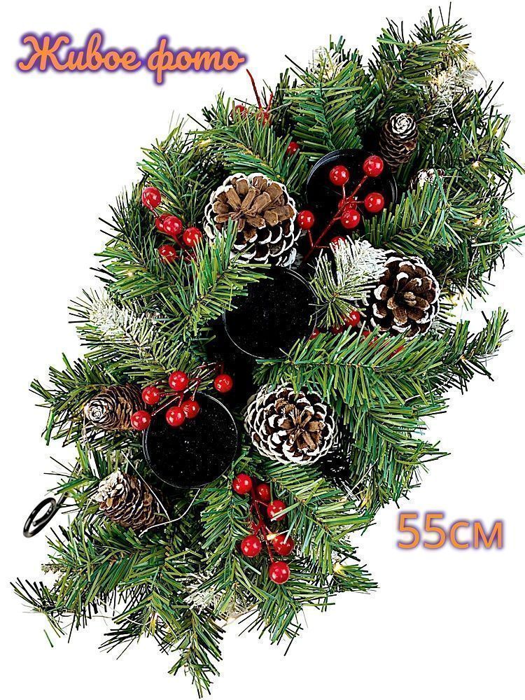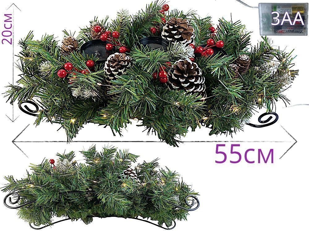 Подсвечник с гирляндой светлячок 55см, шишки, ягоды