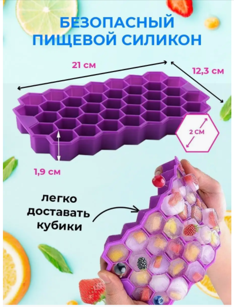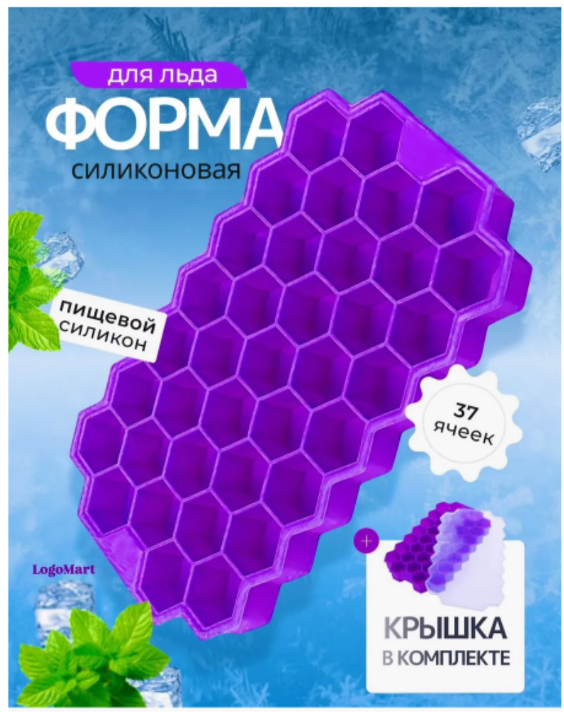 Силиконовая форма для льда с крышкой шоколада конфет. Легкое высвобождение льда и очистка: Гибкий силиконовый материал хорошо формирует дно, облегчает высвобождение кубиков. Гладкая силиконовая поверхность облегчает очистку. Размер 20х12 см, разделена на 37 ячеек. Контейнер может быть использована для шоколада и конфет. Кубики льда подходят для приготовления детского питания, мороженого, сорбетов, десертов, конфет и даже мыла. Безопасны для морозильной камеры, духовки, посудомоечной машины, холодильника и микроволновой печи. Форма для льда силиконовая не деформируется и пригодна для многократного использования. Наши формочки для льда мыла шоколада изготовлены из пищевого силикона, это значит, что формочки для льда не впитывают запахи и лед не получит изменений вкуса. У наших форм есть крышка, а это значит, что жидкость в морозилке не прольется, и формы можно ставить друг на друга. Отличный аксессуар для дома для алкогольных напитков для заморозки. Подойдет как форма для свечей, шоколадные шарики кубики, набор для изготовления шоколада, подарок на новоселье, кухонные принадлежности из силикона, набор кухни силиконовый, товары для дома для дачи, можно сделать конфеты алкогольные и леденцы, все для кухни хранение, использовать как кондитерские формы, для шоколадных изделий, посуда для выпечки и запекания. Заменит пакеты для льда, если вы хотите наморозить лед. Можно использовать как форму для конфет бомбочек свечей, кондитерских изделий, лоток для заморозки, криосферы. Если у Вас есть слаш стакан для мороженого, то это незаменимая вещь. Вы можете сделать фруктовый лед, замороженный чай, лёд для виски.
