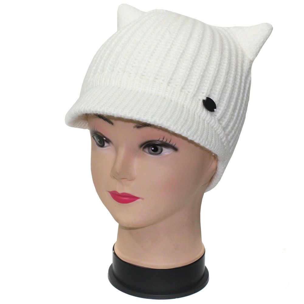 Шапка вязаная с козырьком "уши"