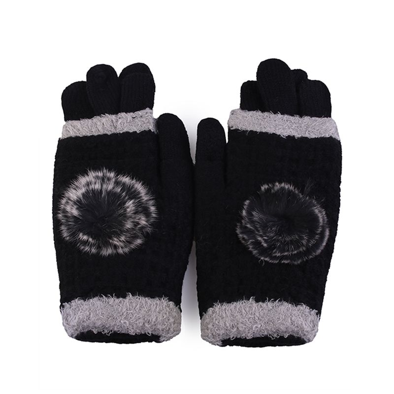 Мягкие и теплые вязанные двойные перчатки с опушкой, хорошо тянутся