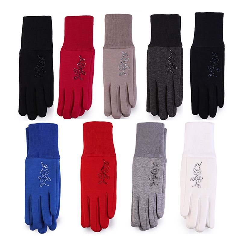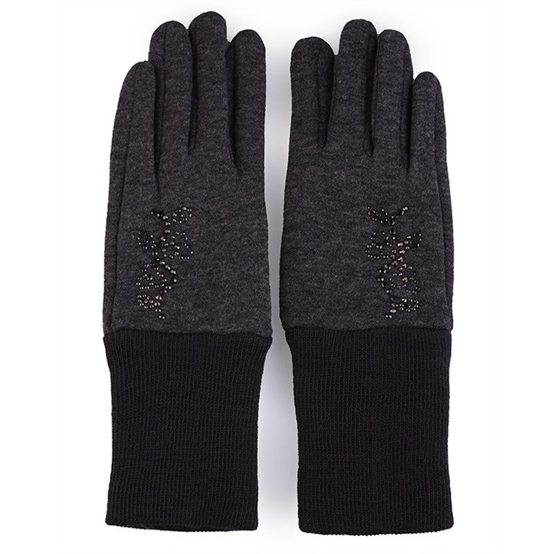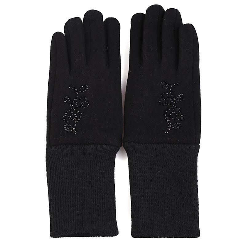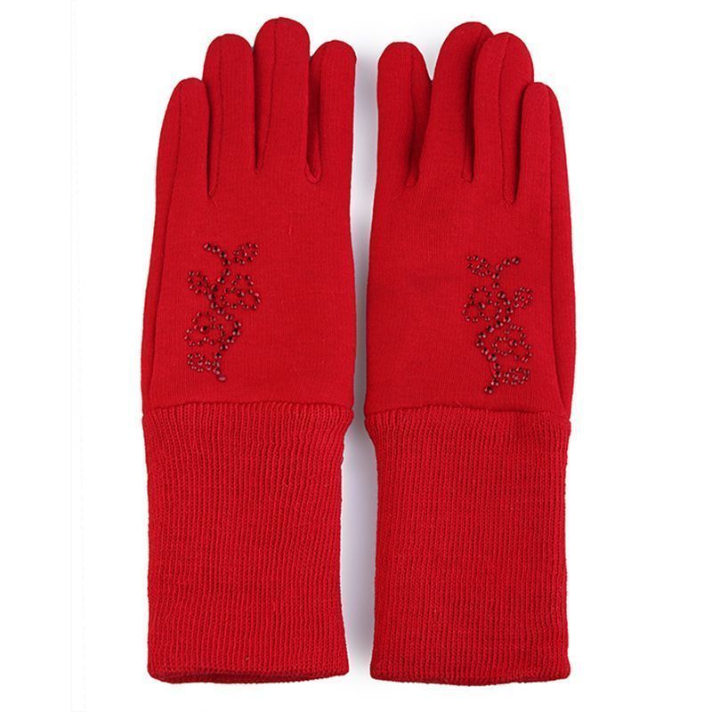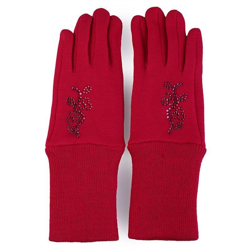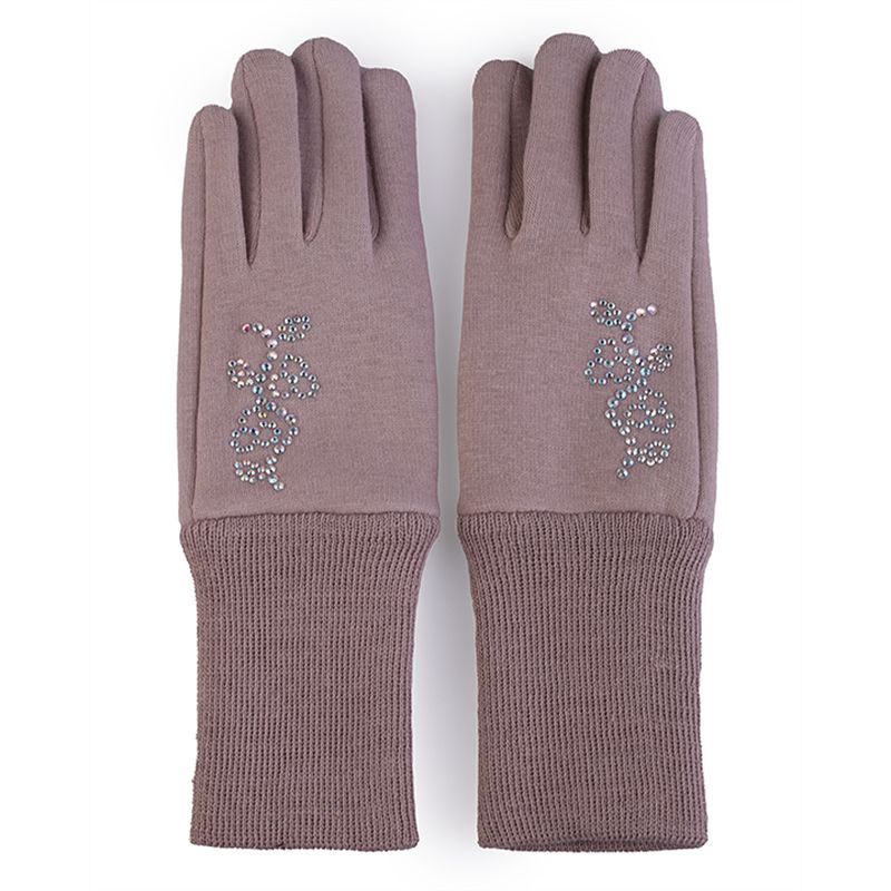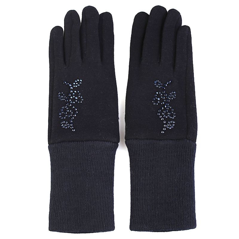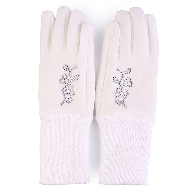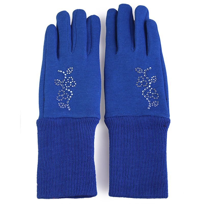 Подростковые перчатки с отворотом,  украшенные стразами.