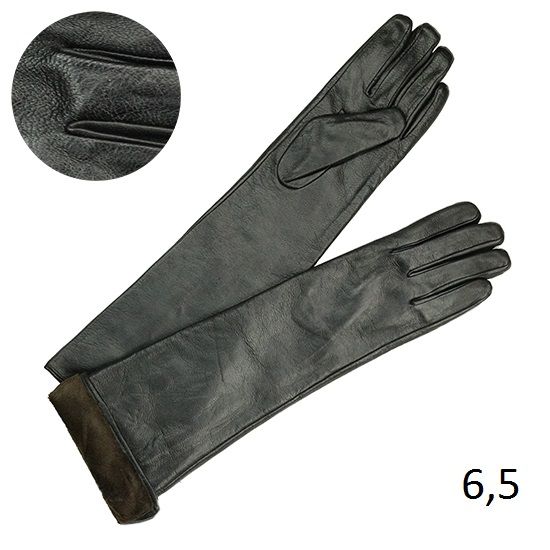 Перчатки женские длинные, внешний материал кожа, материал подкладки плюш, длина 50 см