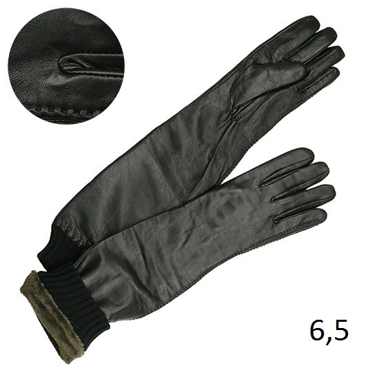 Перчатки женские длинные, выполнены из кожи, материал подкладки плюш, длина 55 см