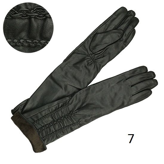Перчатки женские длинные, внешний материал прессованная кожа, материал подкладки плюш, длина 50 см
