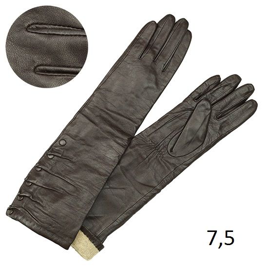 Перчатки женские длинные, выполнены из прессованной кожи, материал подкладки плюш
