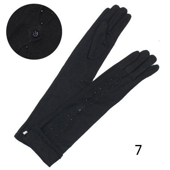 Длинные черные женские трикотажные перчатки с бисером.