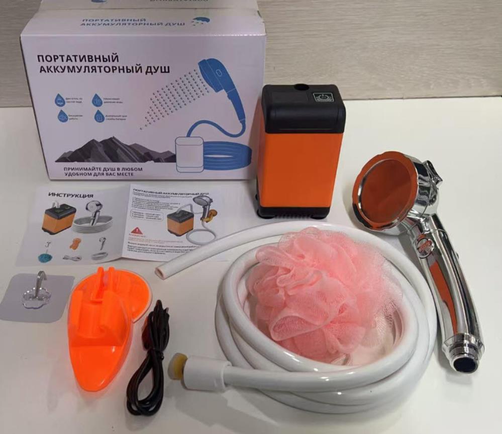 Портативный аккумуляторный душ для кемпинга - это переносной душ с перезаряжаемой батареей, он станет идеальным помощником для любителей кемпинга, активного вида отдыха, туристов, путешественников. Душ в любое время и в любых условиях обеспечивает комфорт, чистоту и гигиену.