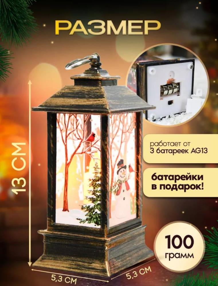 Фонарик новогодний декоративный - это украшение на елку или гирлянду, которое прекрасно дополнит праздничную обстановку любого помещения. Светодиодная свеча внутри новогоднего фонарика на елку и гирлянду создает уютную и магическую атмосферу, освещая ваш дом нежным и теплым светом. Подвесной фонарик новогодний имеет кольцо для переноски и подвешивания, Фонарики уличные новогодние с подсветкой не только используются как новогодние товары для дома, но прекрасно подходят как освещение для улицы. Питание от 3 батареек (идут в подарок) делает светодиодный ночник портативным и позволяет устанавливать его в любом месте.