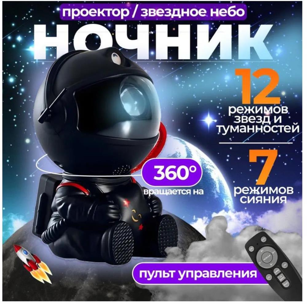 Проектор ночник звездное небо Космонавт с пультом создаст уютную и расслабляющую атмосферу. Превратите комнату в настоящий планетарий. Идеально подходит для детских комнат, спален. Наслаждайтесь видом миллионов звезд прямо у вас дома. Дети будут в восторге!