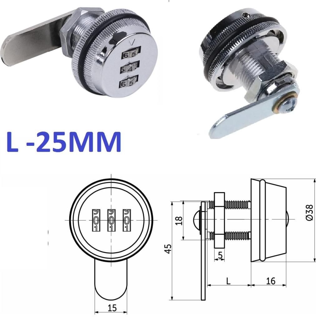 Мебельный - Почтовый кодовый замок с прямым ригилем 25мм,