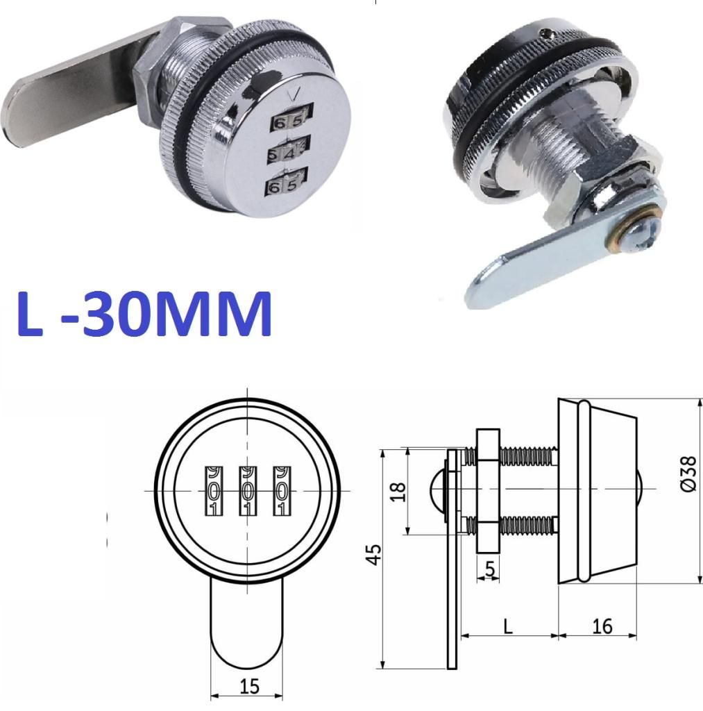 Мебельный - Почтовый кодовый замок с прямым ригилем 30мм,