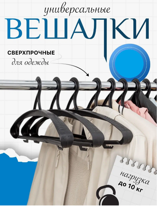 Вешалка усиленная для одежды до 10кг, плечики 46x20x4см
