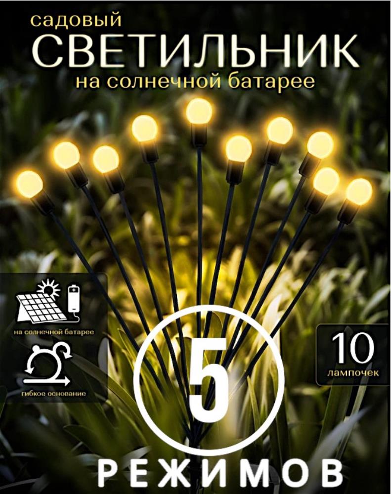 Садовый светильник 5 РЕЖИМОВ , 10ЛАМП на солнечной батарее , желтые шарики