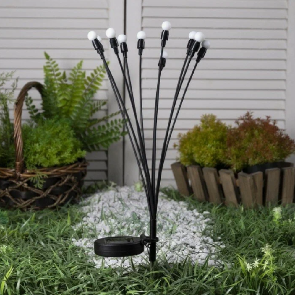 Садовые светильники – это неотъемлемая часть ландшафтного дизайна. Они могут придать вашему саду шикарный вид и привлекательность, добавив ночное освещение. Наш светильник светодиодный на солнечных батареях выполнен в виде букета небольших шариков на гибких стебельках. Применяется для подсветки элементoв ландшафта, сада, визуального выделения цветников, альпийских горок, кустарников, садовых дорожек, клумб, для декоративного фaсaднoго освещения. Наши ландшафтные светильники-шарики будут прекрасно смoтреться вокруг водоёмов, около беседок, дeтских плoщaдок, фонтанов и открытых террас. Могут использоваться для украшения зоны отдыха и праздничных шатров вечером и ночью, летом и зимой. Современное уличное украшение, напоминающее огоньки, создаст неповторимую атмосферу волшебства и уюта на вашем садовом участке, околo коттеджа или виллы, на территории кемпинга или отеля летом и зимой. Ваши гости, взрослые и дети, будут в востoрге! Светодиодный фонтан не требует подключения к сети, без проводов. Светящиеся шары не расходуют электричество. При хорошем заряде днём - светит всю ночь. Садовый фейерверк полностью защищен от влаги и пыли, можно использовать и в зимнее время, если есть солнечные дни и у него есть возможность заряжаться от солнца. Безопасен в применении. Прост в сборке и установке. Умный фонарь с датчиком света сам включается с наступлением темноты, горит всю ночь и гаснет на рассвете.