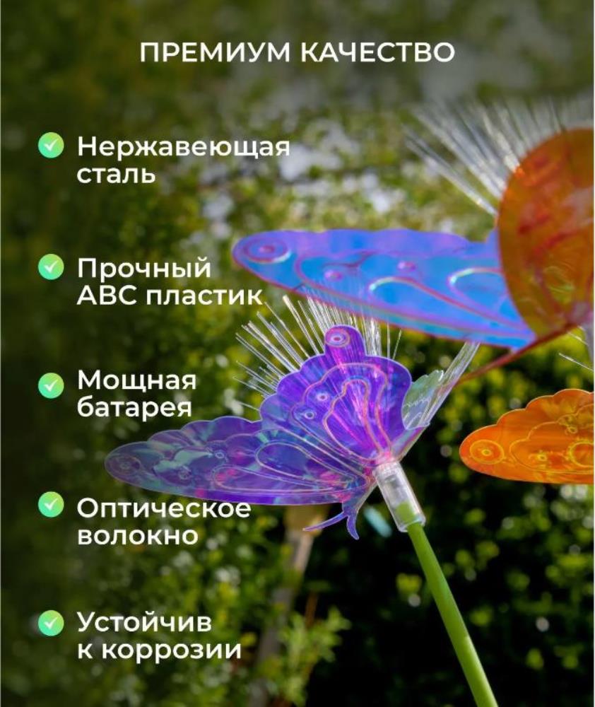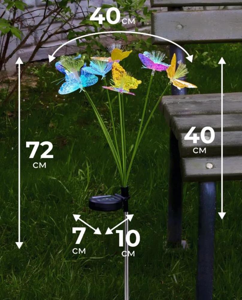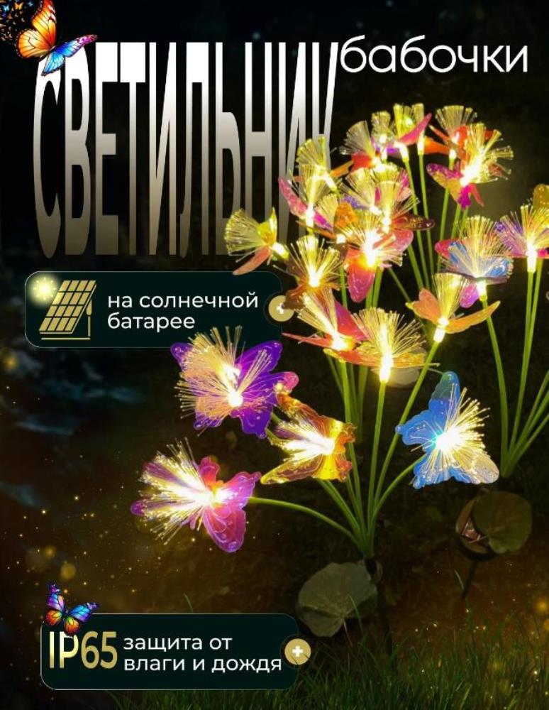 Ландшафтный светильник на солнечной батарее 1 шт, цвет свечения теплый желтый. 2 режима работы. Фонарики садовые в форме бабочки. 8 светодиодов. Светильник на солнечной батарее уличный не боится влаги и дождя.Красивые продукты