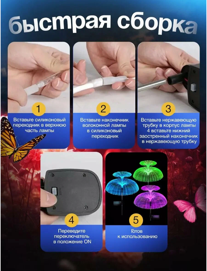 Светильник плавно меняет один цвет на другой. Это выглядят нежно и ярко одновременно, благодаря чему подходят под любой экстерьер.