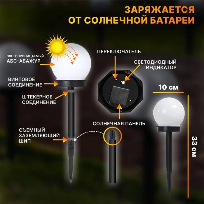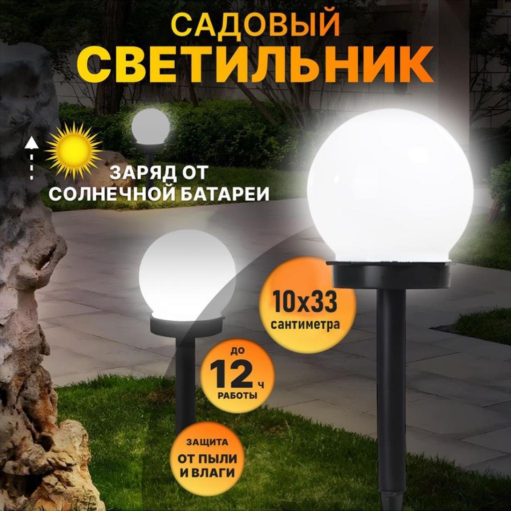 Светильник садовый с белым непрозрачным плафоном – шаром диаметром 100мм.