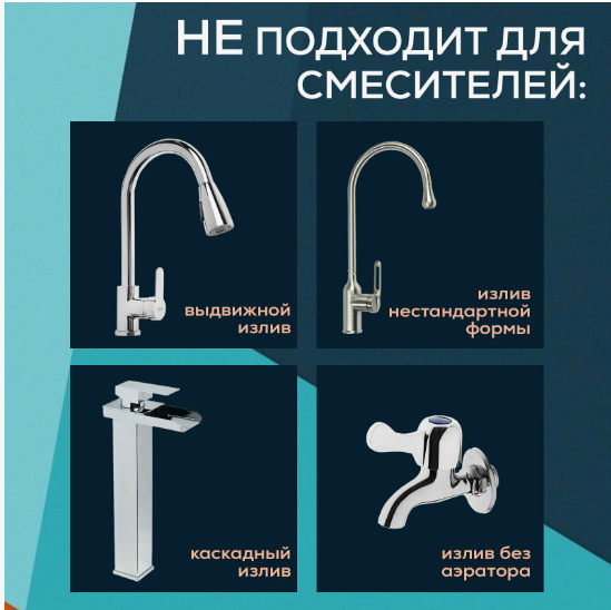 Аэратор является универсальной насадкой и подходит практически к любому современному крану. Даже если у Вас на даче древний бабушкин кран и Вы не хотите его менять, насадку можно установить через переходник. Визуально насадки смотрятся эстетично и не меняют внешний вид смесителя.