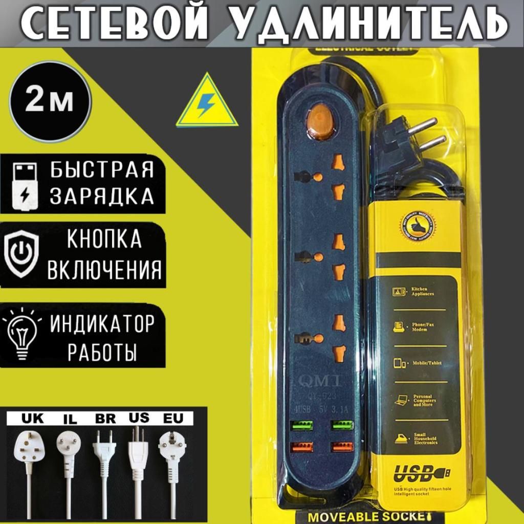 Сетевой удлинитель Евро EU-3 Multi-Protection 4USB (QY-923) 2500W черный