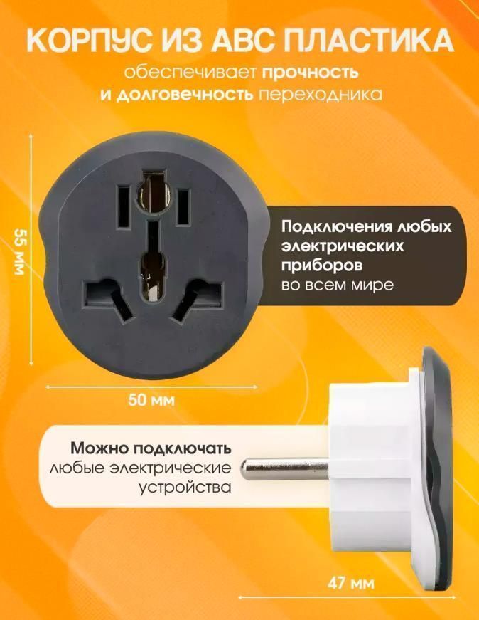 Сетевой переходник на евро вилку предназначен для подключения устройств со штекером UK/US/CN к обычной российской (европейской) розетке типа C, что значительно упростит эксплуатацию бытовых приборов в любой стране мира.