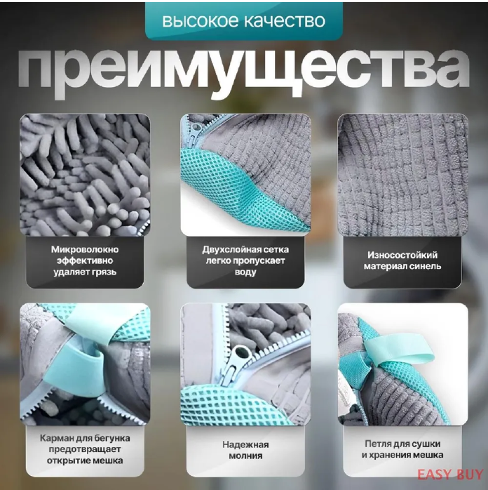 Вы сможете легко стирать не только кроссовки, но и бельё в одном мешке, что сэкономит ваше время и упростит процесс стирки.