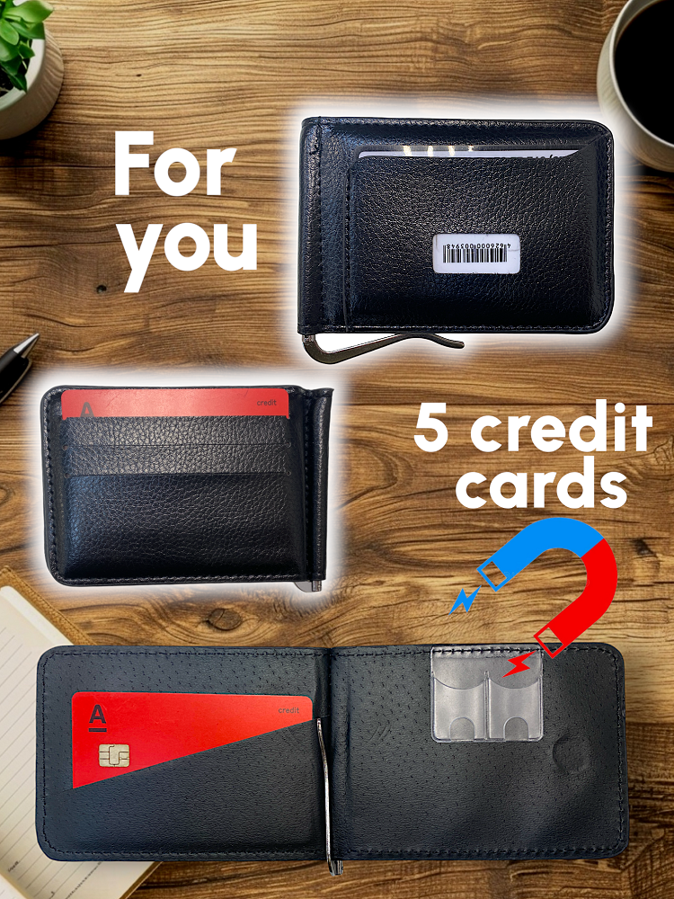 Зажим для купюр, 5 карт, 2 сим, черный цвет