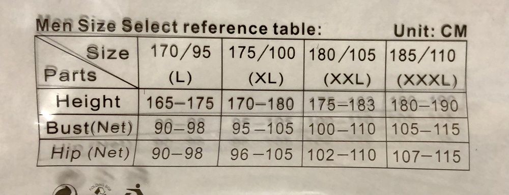 Размер XXXL подходит на рост 180-190 см, обхват бедер 107-115 см