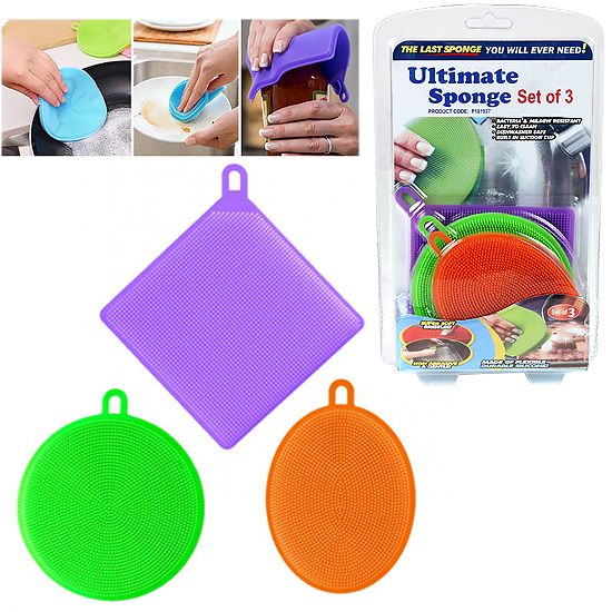 Данный набор решит сразу несколько проблем хозяйки в доме и на кухне. Благодоря плотной силиконовой щетине, губки с легкостью справятся с грязью в самых труднодоступных местах и могут даже собрать шерсть животных с мебели. Губки так же подойдут для мытья посуды, ими можно чистить окна, полы и не только.