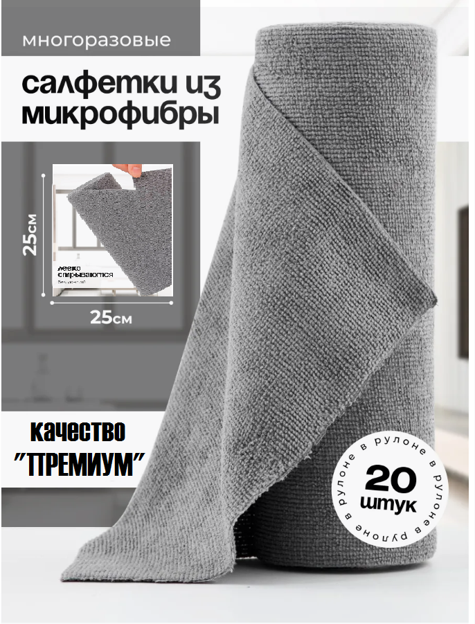 Салфетки из микрофибры в рулоне — ваш незаменимый помощник для быстрой, эффективной и бережной уборки в любом уголке дома. В одном рулоне содержится 20 плотных тряпок для уборки размером 25х25 см, изготовленных из высококачественной тканевой микрофибры. Благодаря уникальной структуре фибры, салфетки прекрасно справляются с удалением пыли, жира, пятен и загрязнений, не оставляя разводов и ворса даже на деликатных поверхностях.