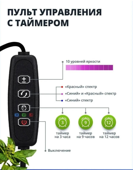 Освещение для рассады и растений очень важно при недостатке дневного света, в связи с этим очень нужна подсветка для цветов. Ультрафиолетовая лампа способствует росту рассады, овощей, микрозелени, цветов, декоративных и комнатных растений. Фитосветильник для продления светового дня сохранит ваш огород на подоконнике. Фиолетовая, лампа для растений светодиодная, на окно мощностью 8 Вт оснащена таймером с 3 до 9 часов с перерывами на сон. Светильник для рассады имеет 2, 3, 4 лампы с 3 режимами, 9 уровней яркости, пульт управления. УФ лампа для растений позволяет выбрать сектор фотосинтеза для роста растений. Гибкая фитолампа полного спектра подстраивается под нужную высоту для растений. Фито лампа размещается на расстоянии 30-120 см от рассады. Линейный, светильник для растений крепится на любую поверхность с помощью прищепки для оптимального освещения. Диодные лампы (фитосветильники) прекрасная замена светодиодному прожектору для выращивания растений. Исключите попадания влаги внутрь. Лампа на прищепке подключается с помощью стандартного адаптера с USB-разъемом.