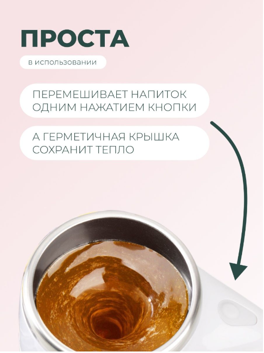Кружка-мешалка - самый прикольный и интересный вариант для подарка, чтобы удивить друзей, родителей и близких! Кружка с автоматическим размешиванием изготовлена из нержавеющей стали и пищевого пластика. Наша электрокружка оснащена уникальной мешалкой, благодаря которой можно забыть про ложку! Кружка с двойными стенками, поэтому она совмещает в себе и функции термокружки. Строгий, лаконичный дизайн кружки металлической подходящий в любой интерьер и одновременно функциональность отличающие её от остальных бюджетных аналогов может быть использованы в качестве идеи для подарка офисному работнику или начальнику крупной организации. А также на день рождения или другие праздники вашей маме, другу или подруге. Термокружка для кофе имеет двухцветное оформление и металлический ободок. В комплекте кружка-мешалка поставляется с крышкой препятствующей проливанию содержимого и сохранению тепла. Кружка с мешалкой пластиковая выполнена из экологически чистого пластика, а внутренняя колба из нержавеющей стали, которая сохраняет тепло дольше обычной кружки, подойдет любителям горячего чая или кофе! Для того что бы размешать напиток достаточно нажать кнопку на ручке. Размешивание происходит с помощью инновационной мешалки в нижней части кружки. Она с лёгкостью размешает сахар, сухое молоко, сливки и мёд.