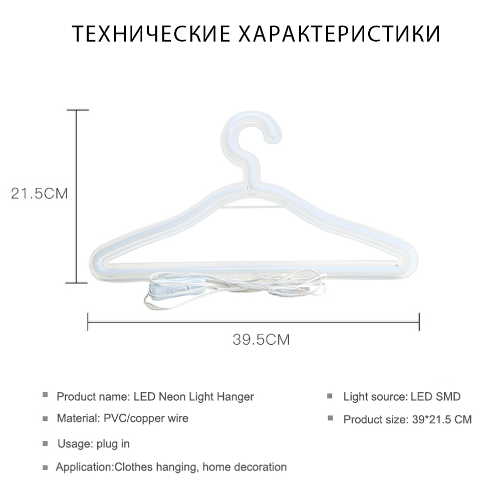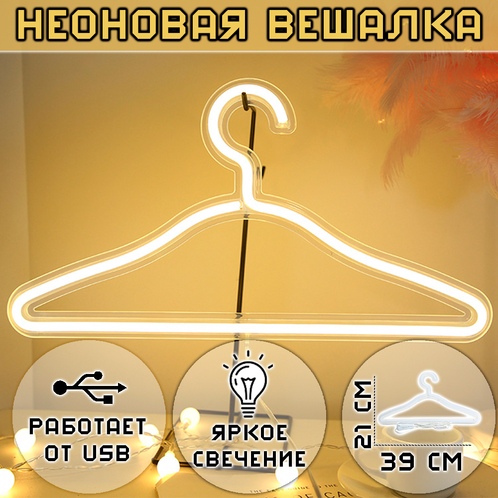 Неоновая вешалка-светильник теплый белый
