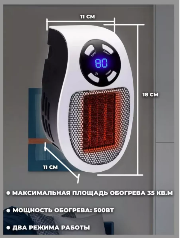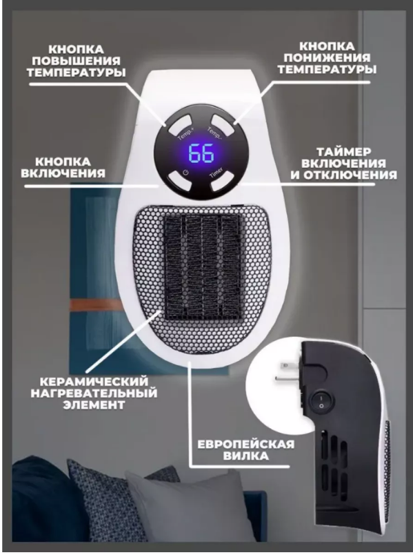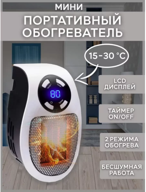 Портативный мини-обогреватель - ваш надежный помощник в создании комфортной атмосферы дома или в офисе. Этот компактный обогреватель идеально подходит для межсезонья , когда требуется дополнительное тепло. Обогреватель подключается к розетке на стене и не имеет шнуров, что обеспечивает удобство и свободу перемещения .