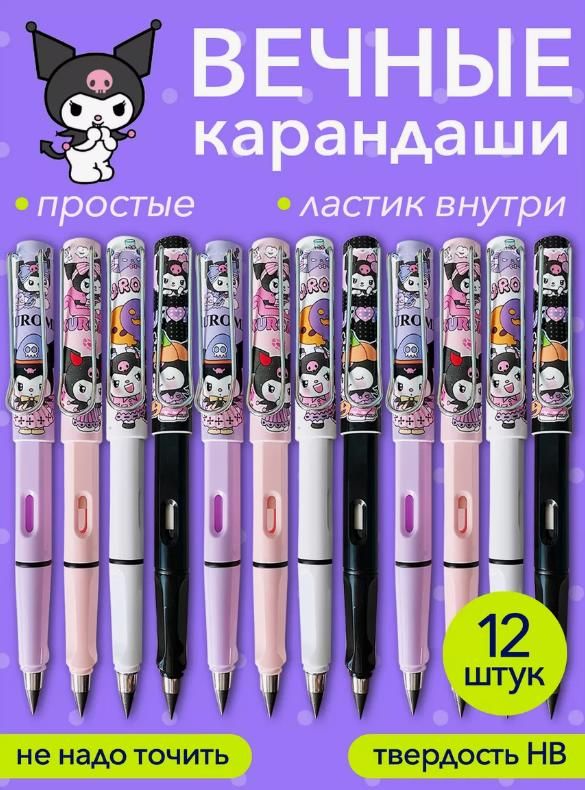 Простой Карандаш Вечный с ластиками внутри, черный, твердость НВ, карандаш чернографитный