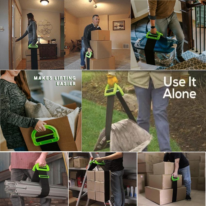 Ремень позволит значительно облегчить перенос мебели, коробок, ящиков и т.д. Правильно распределяя вес можно значительно уменьшить риск появления каких-либо травм или растяжений. Благодаря наличию регулировки, ремень можно как удлинить, так и укоротить, что позволит вам максимально удобно приспособить ремень под необходимый предмет. Данный ремень предназначен для того, чтобы помогать людям переносить тяжёлые предметы. Он состоит из длинного и довольно широкого нейлонового материала с большой ручкой на двух концах.Ремень выдерживает до 225 кг.