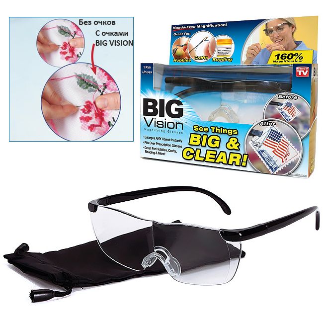 Если такая простая задача, как вдеть в игольное ушко нитку или прочитать написанную маленькими буквами инструкцию вызывает у вас затруднения. Если вы устали от чувства беспомощности, когда имеете дело с мелкими предметами. Увеличительные очки станут вашим надежным помощником.