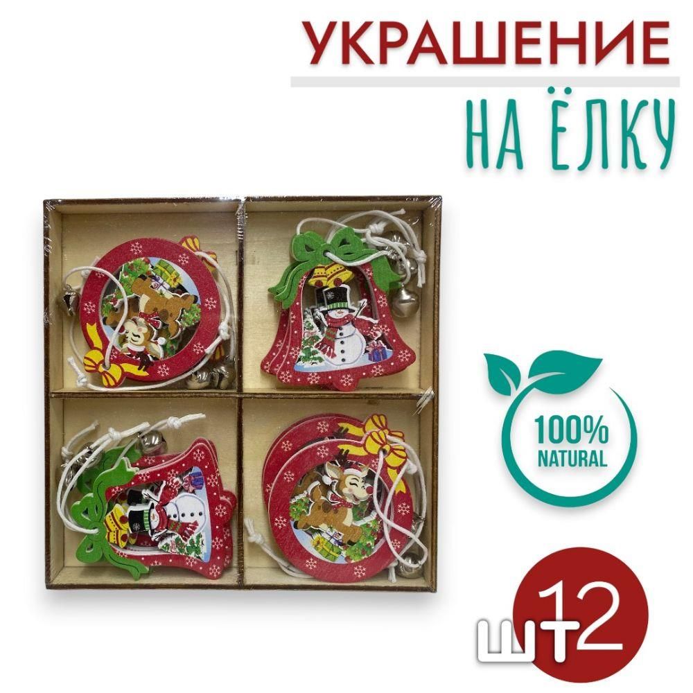 Игрушки из дерева станут ярким атрибутом новогоднего праздника. В новогоднем наборе 12 фигурок (по 3 штуки каждого из 4-х видов).