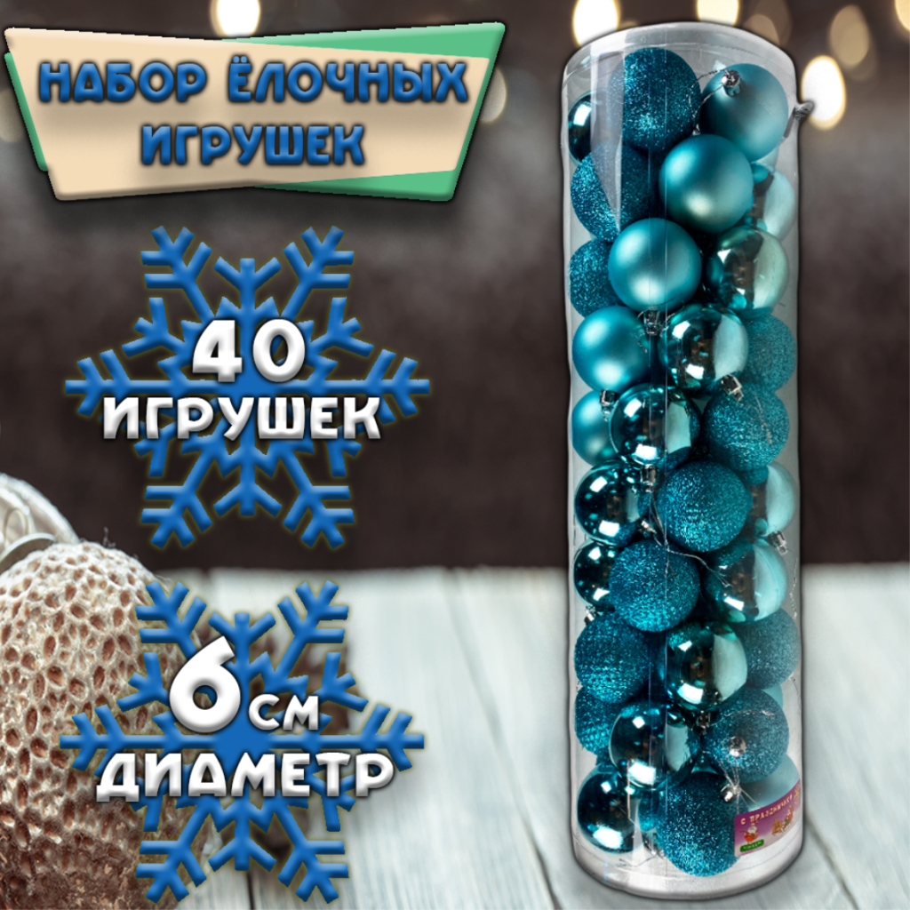 Набор красивых шаров на ёлку 40 шт., диаметр 6 см. Прекрасный набор, универсальный, подойдет к любому интерьеру и как на подарок. В наборе 4 вида шаров, шершавый, шершавый рельефный, глянцевый и матовый.