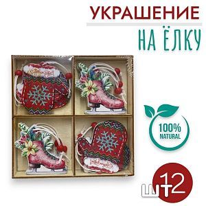 Шары 3штХ10см, украшение на ёлку ручной работы