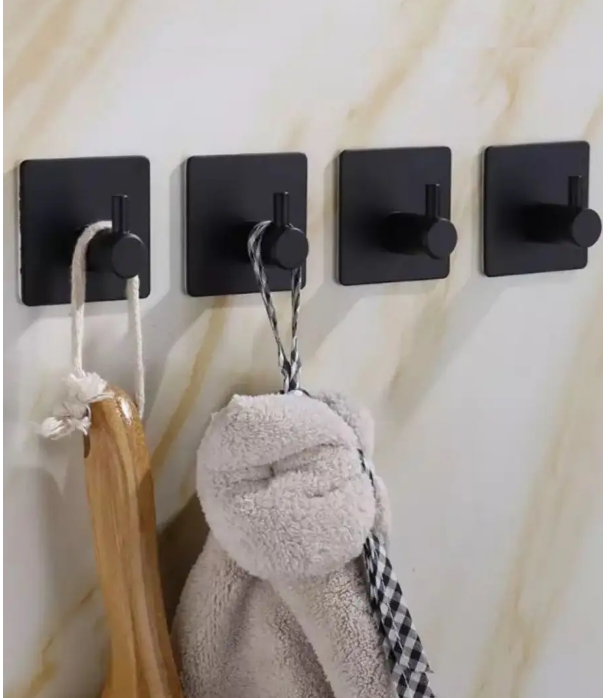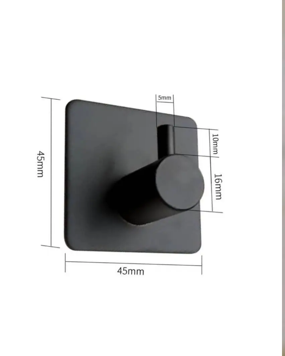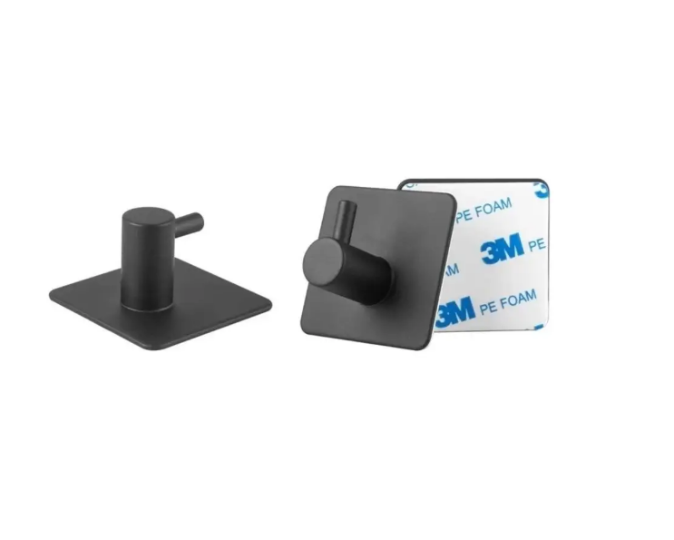 Крючок металлический самоклеящийся, держатель для полотенец черный матовый