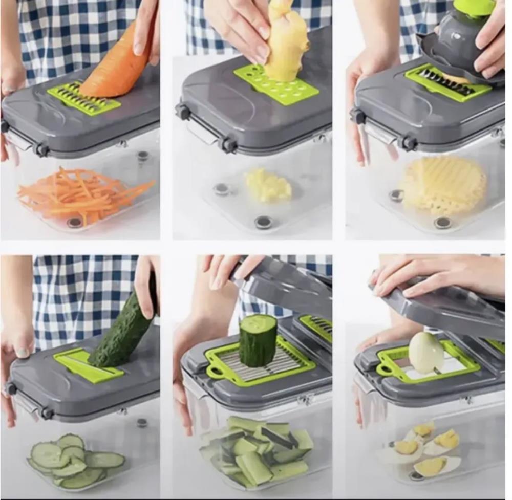 Ручная терка - овощерезка 22 в 1, быстро и качественно нашинкует овощи и фрукты разнообразными способами! Это компактное и многофункциональное приспособление-измельчитель для приготовления еды, которое станет незаменимым помощником на любой кухне. Она разработана совместно с профессиональными шеф-поварами, а это значит, что в ее конструкции учтены все необходимые качества для быстрой и легкой нарезки. В комплекте с теркой вы найдете 13 насадок для нарезки контейнер для хранения с крышкой сепаратор для яиц, овощечистку. Нарезанные продукты будут попадать в специальный контейнер, который оснащен резиновыми ножками, что не позволит ему скользить по рабочей поверхности. Для протекции ваших рук разработан универсальный держатель, который сохранит ваши пальцы в безопасности. Так же в комплекте вы найдете специальную вилку для удаления застрявших кусочков в прессе и удобный контейнер для сушки овощей и фруктов. Измельчитель для овощей выполнен из высококачественного пластика, а острые лезвия с лазерной заточкой - из нержавеющей стали. Это универсальный измельчитель, шинковка и резак овощей, фруктов и корнеплодов, который позволит с легкостью нарезать капусту, морковь картошку, лук, салаты и многое другое. Овощерезка-терка изготовлена из ABS пластика высокого качества, имеет эргономичную ручку для удобного управления. Она проста в использовании и легко моется, что делает ее идеальным инвентарем для любой хозяйки. Комплектация: насадки - 13 шт; Контейнер для сушки овощей с разделителем - 1 шт.,; Пластиковый контейнер для хранения с крышкой - 1 шт; Плододержатель - 1 шт., сепаратор для яиц - 1 шт., овощечистка - 1 шт; контейнер для хранения насадок-1 шт,щеточка для очистки-2 шт.