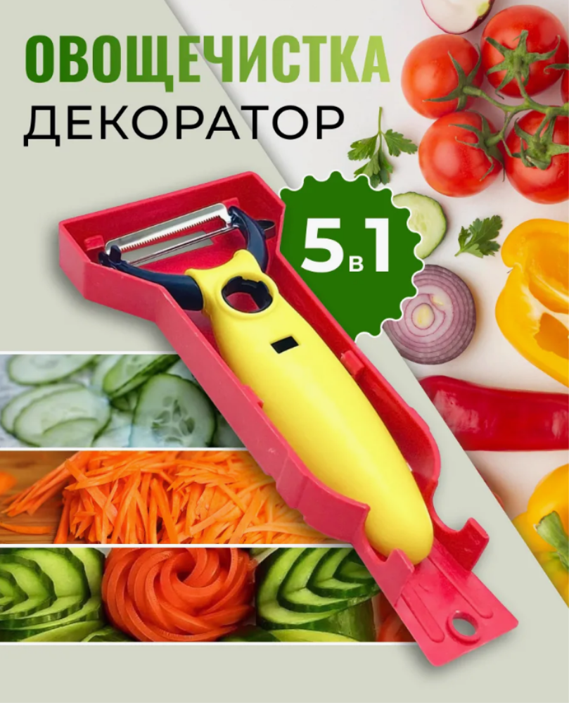 вощечистка 5 в 1, которая умеет все! Она и чистит, и режет, и декорирует — прекрасная помощница на кухне для каждой хозяйки. Нет такой задачи, с которой она бы не справилась. Функциональная картофелечистка экономит массу времени в приготовлении пищи, а сам процесс делает легким и в удовольствие. Ее удобно держать в ладони, за счет длинной ручки, и рука совершенно не устает в процессе чистки. Выполнена из прочной нержавеющей стали, но при этом, она достаточно легкая. С одной стороны можно очистить или тонко нарезать картофель и фрукты, а с другой — соломкой. Вы можете почистить морковь, затем перевернуть механическую чистилку и нарезать ее тонкой соломкой для салата или приготовить вкусную корейскую морковку. Наша ручная овощечистка — многофункциональная! Используйте чистилку для тонкой нарезки огурца, кабачков и баклажанов. Пользуйтесь узким боковым лезвием для удаления глазков с овощей, а широким для декорирования фруктов. Универсальная овощечистка для картошки — это супер помощник, который экономит время и помогает создавать настоящие кулинарные шедевры! Благодаря классическому металлическому оттенку, картофелечистка впишется в любой интерьер кухни.