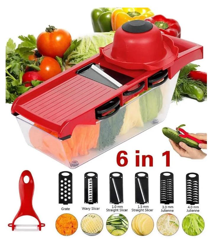 Многофункциональная ручная овощерезка 6 в 1 — удобный и практичный кухонный помощник для быстрой нарезки овощей и фруктов. Оснащена сменными лезвиями для разных видов нарезки и вместительным контейнером для сбора продуктов. Подходит для приготовления салатов, гарниров, заготовок и блюд правильного питания.