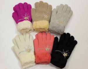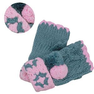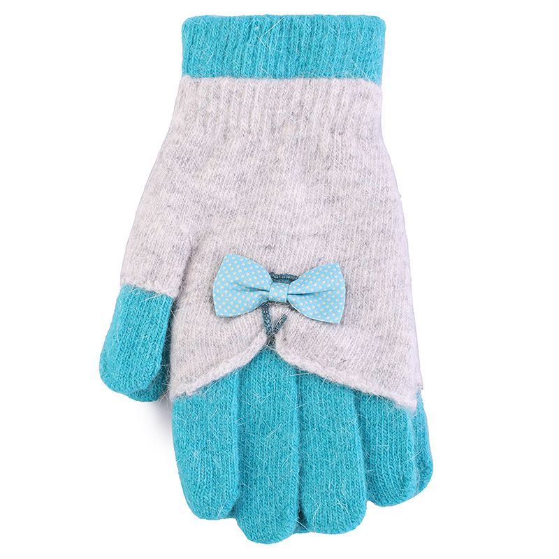 Перчатки трикотажные детские двойные, украшенные бантиком.
