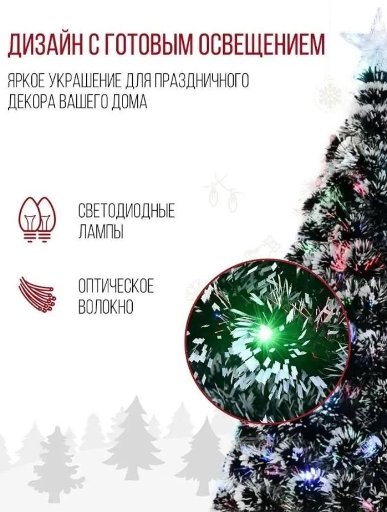 Пушистая светодиодная ель высокого качества! Просто распакуйте и расправьте веточки. Светящаяся ёлка оснащена светодиодной подсветкой, оптоволоконное освещение переливается миллионом огоньков, цельно и очень красиво выглядит без дополнительных украшений. Преимущества: Елка складная, сборная. Встроенная диодная звезда. Ствол с пушистыми ветками и крепкой подставкой. Ветви с имитацией снега.
