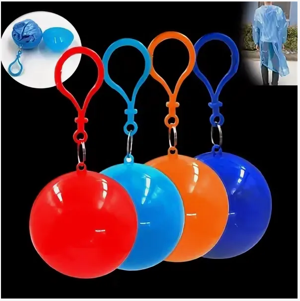 Дождевик с капюшоном универсального размера, упакован в контейнер-брелок (диаметр 6 см) и крепится посредством карабина. Помещается в карман, идеально дополнит сумку, рюкзак или емкость для питья.