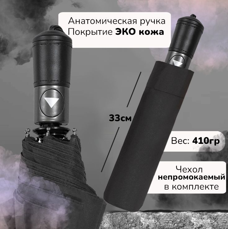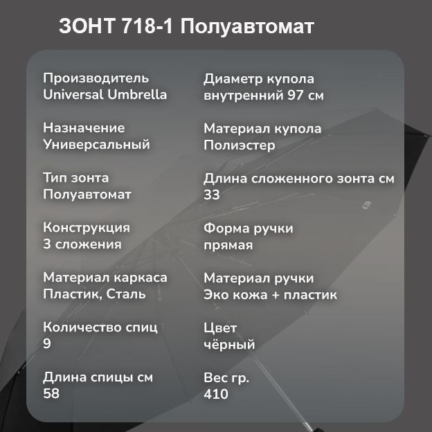 Зонт Universal Umbrella 718-1 полуавтоматический чёрный ,ЭКО кожаная ручка прямая